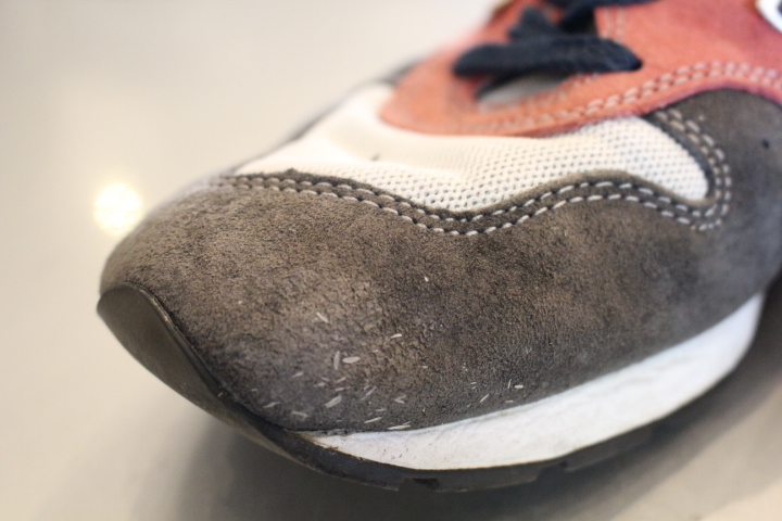 靴が汚れたらしく水洗いを試みるが、スエード部分の色が抜けてしまう事態・・・