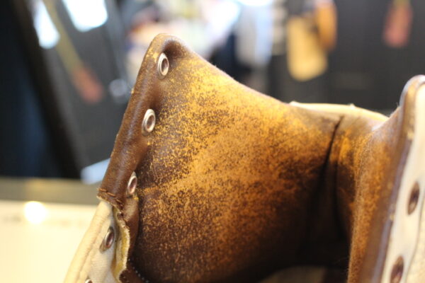靴の脱きで擦れるカカトの部分は本革で張り替え。