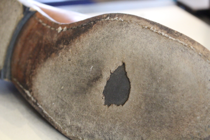 ここ最近レザーソールでよく見られる、ソールの穴あき。