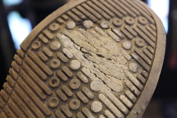 ラバーソールが硬化し履き続けると写真の様になる為要注意!