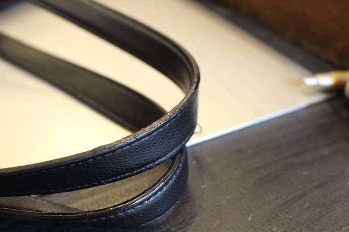お仕事で使われているお客様のポールスミスのバッグですが、ハンドル部分の劣化でご来店。