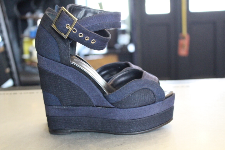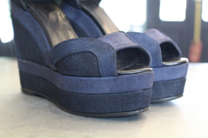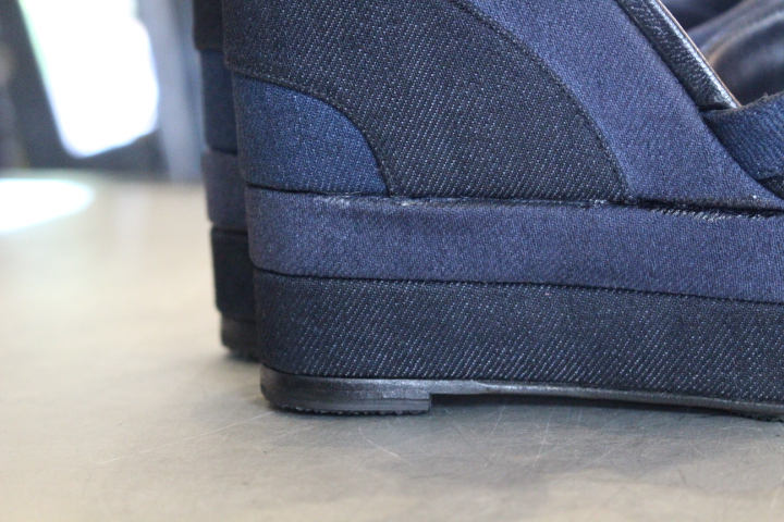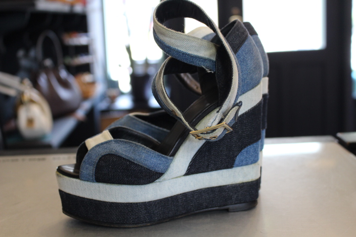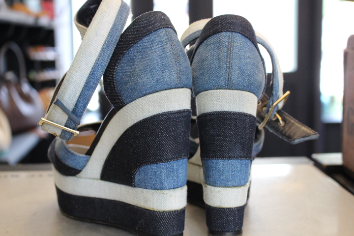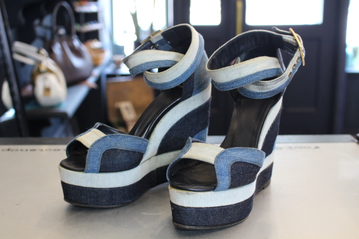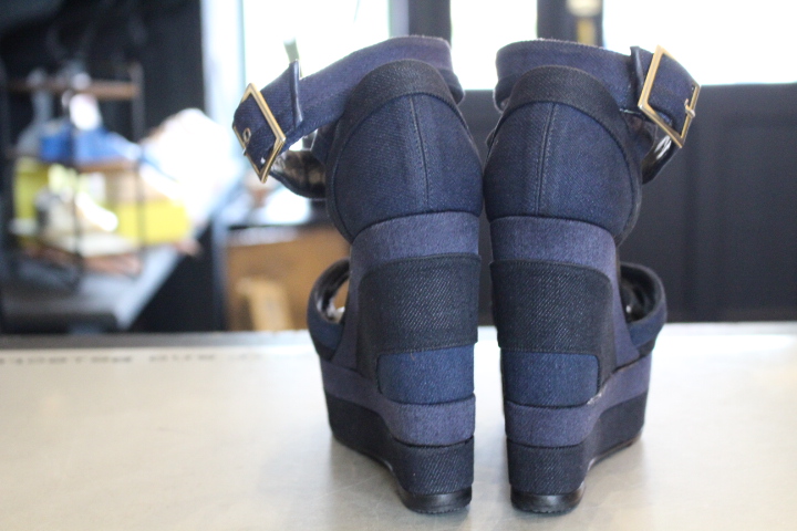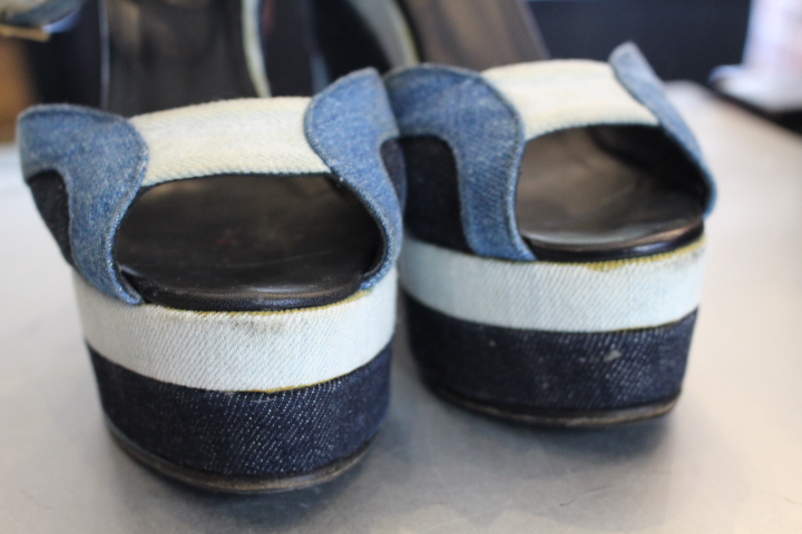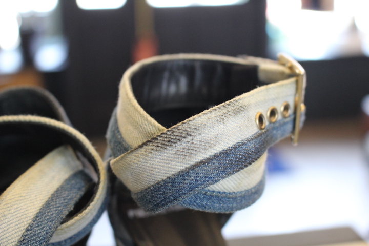 3色で構成されたデニムのサンダルも白い部分の汚れが目立ち御来店。