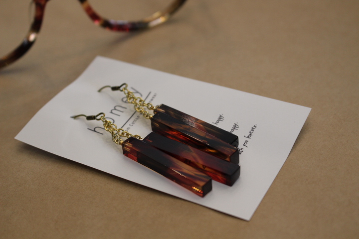 メガネの生地とお揃いでピアスも作成。