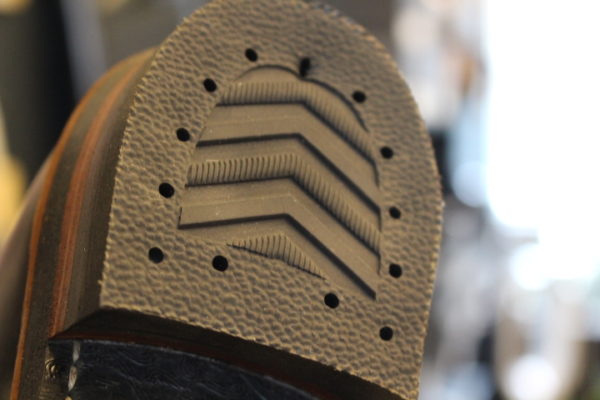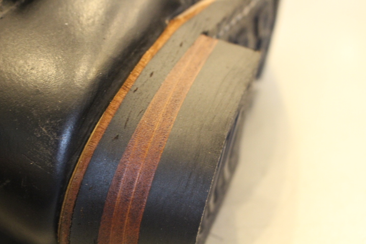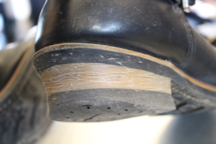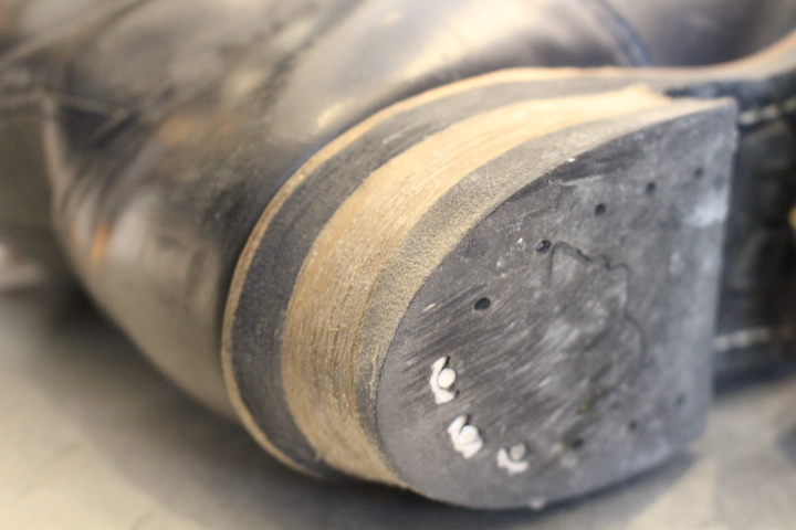 純正は樹脂製のヒールベースを使用しておりますが、交換の際はレザーで積み上げていきます。