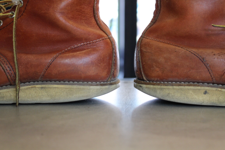 ここまで減っていれば、ソール交換後の履きやすさを体感出来る減り具合。