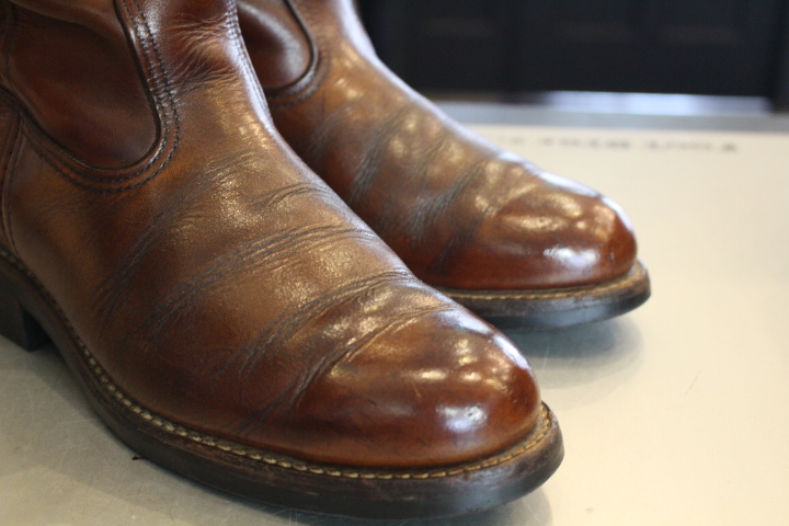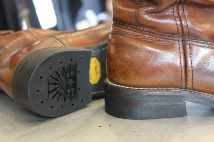 1度オールソール(靴底交換)でVibram#430にカスタムされたレッドウイングのペコスブーツ。