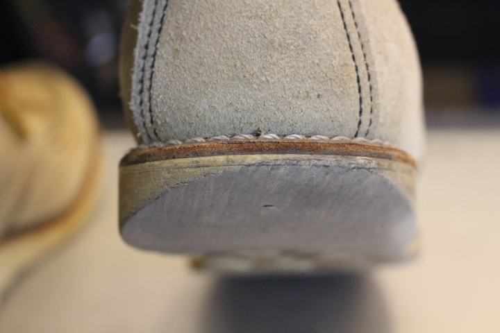 ギリギリなオールソール(靴底交換)の交換ラインです。