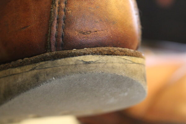 長年履くと写真の様にカカトがすり減ってきます。