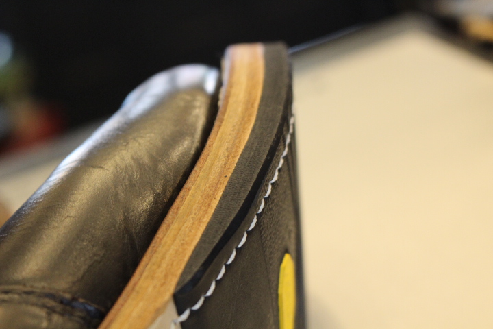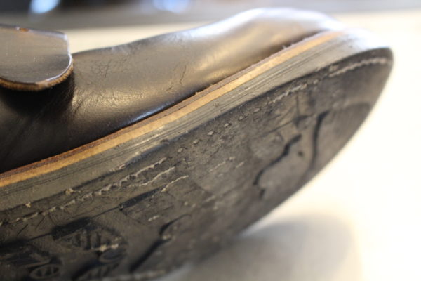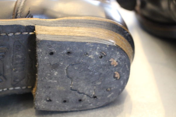 外側を擦る為、出し縫いのステッチが切れソールも半分以上減っておりました。