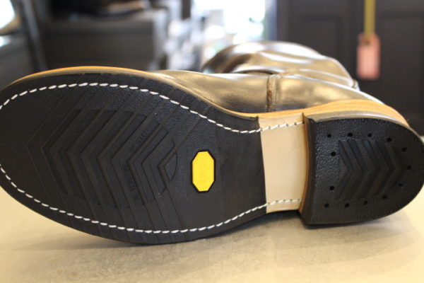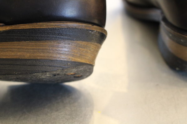 フルソールに比べ、ハーフソールの場合カカトの部分にラバーソールが無い為、積み上げ部分が革のみですっきりとした印象です。