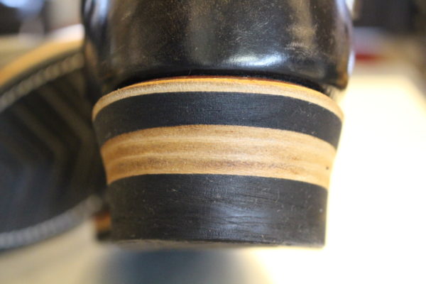 プラステックのヒールベースから、”革”を使って積み上げる事でとても良い雰囲気で仕上がります。