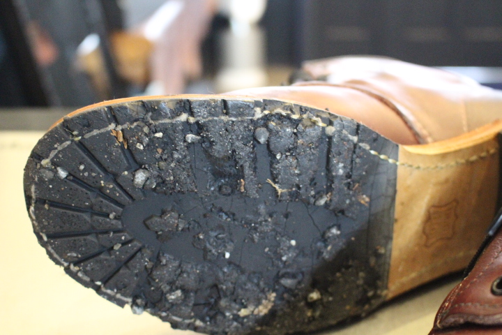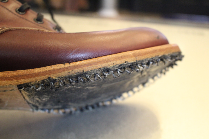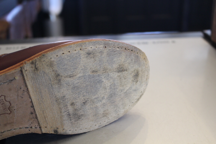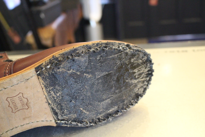 ソール側を綺麗に清掃し、新しいソールを取付ける準備を行います。