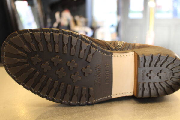 削られたウェルトからは出し縫いのステッチが見えかかっております。