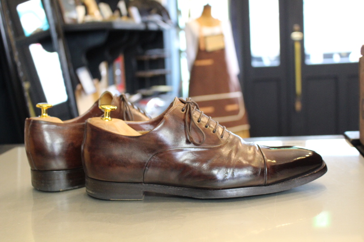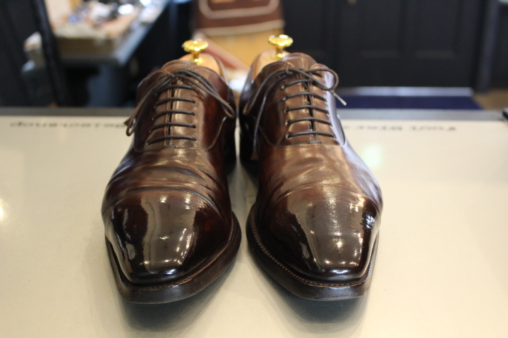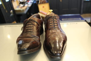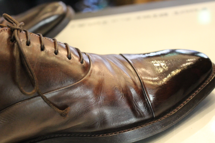 比べてみれば分かりやすく、シューツリーや靴磨きの必要性がお分かり頂けますでしょうか?