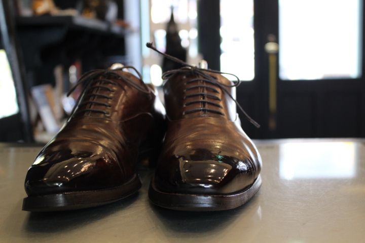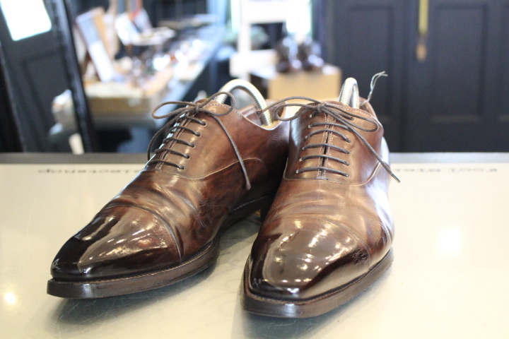 形状記憶された靴は、正しい形に戻してあげてしっかり磨けばこの通り!