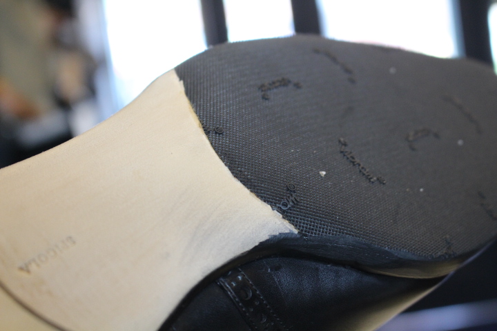 新品の靴を購入したら、履き始めの補強でお馴染みのハーフラバーソールの取付。