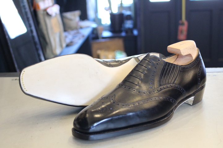靴を靴りだしてからお客様の手元に届くまでに少なからず月日が経っておりますので、履き始めに磨く事で変な履き皺が入らずアッパーをベストコンディションの状態で履き始める事が出来ます。