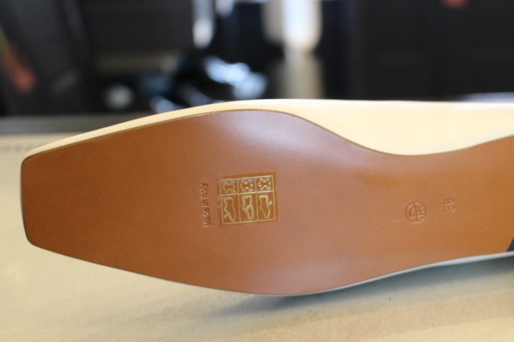 THE ROWのフラットシューズですが、履き初めのソールを取付けます。