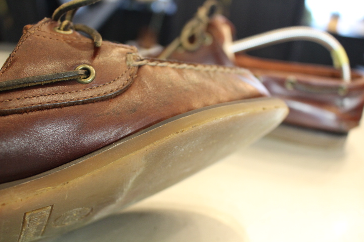 ソールを再度接着する場合は左側の状態にしなければきちんと接着する事が出来ません。