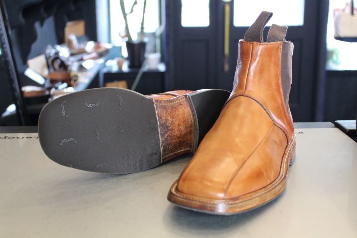 レザーソールにはハーフラバーソールを取付。