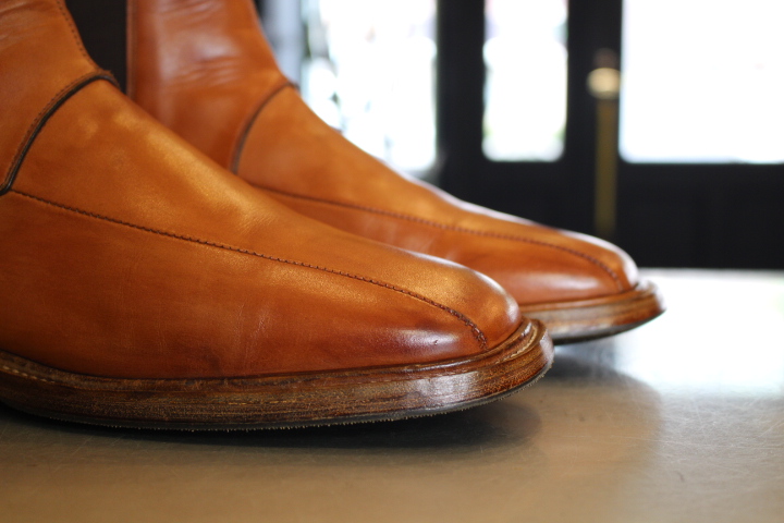 シミが出来やすい茶系の靴は日々のお手入が必要。