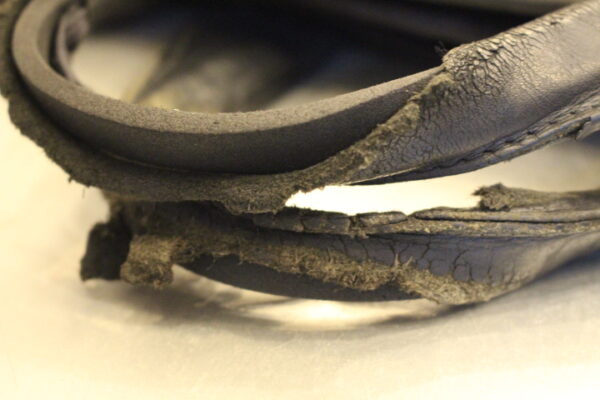 毎日握る部分は、汗等の影響で写真の様に革が裂けてしまうケースが多いですね。