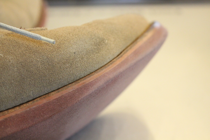 ソールの厚みも同じ厚さになる様にミッドソールにレザーを使い、コバはナチュラルで仕上げております。