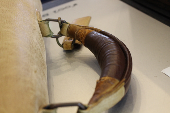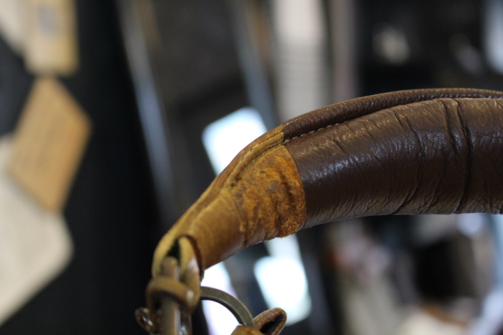 数年間の使用によって、修理した継ぎ目から革が裂けている状態です。