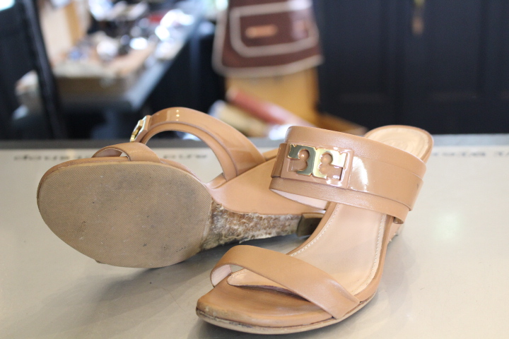 トリバーチのウエッジソールのサンダルですが以前ハーフラバーソールを取り付けました。 カカトが減って来ると同時に、ハーフラバーソールからカカトの間のレザー部分が地面に近づき削れている状態。 このままソールが削れると、次第に...