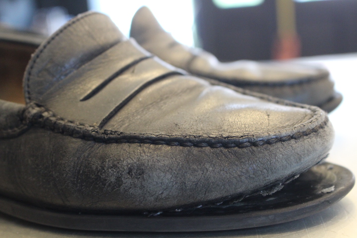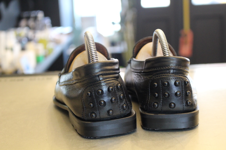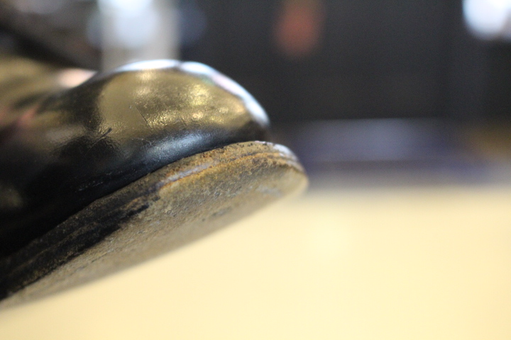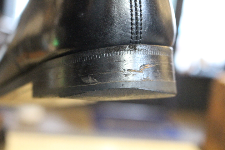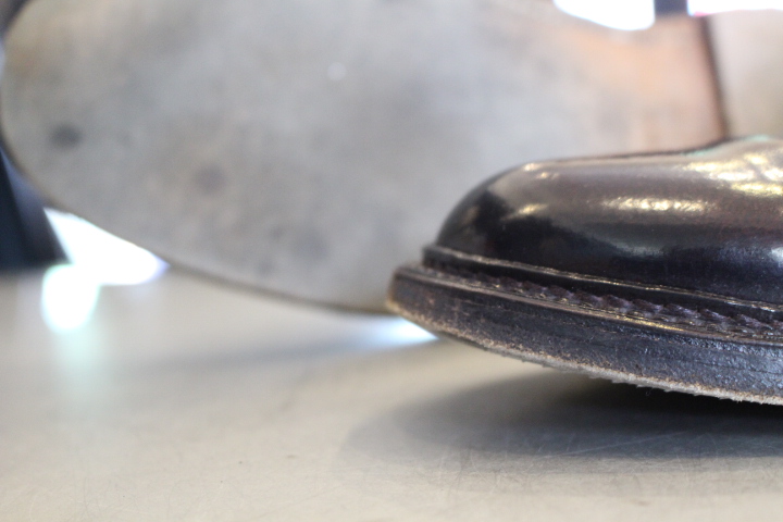 つま先が減っていたレザーソールはハーフラバーソールとヴィンテージスティールで補強致しました。