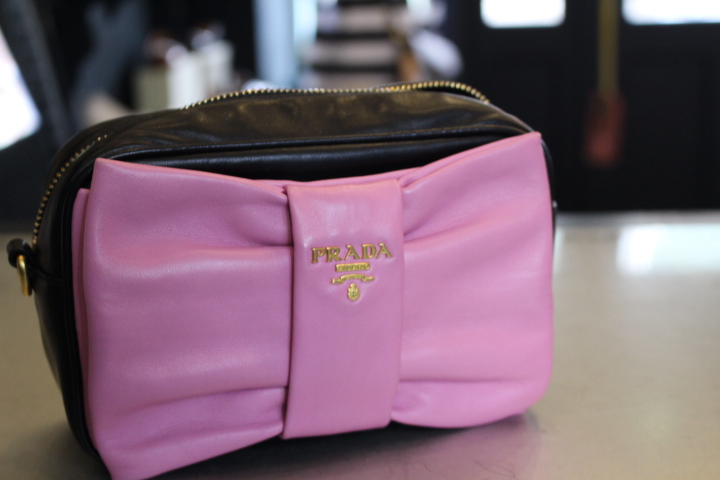 プラダのバッグですが、リボンの色がどうしても気になるとご来店。