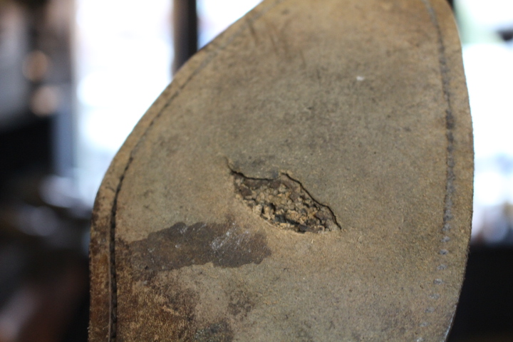 ソールに穴が開いたまま履き続ければ、履き心地は勿論、最悪場合修理が出来なくなる事も考えらます。