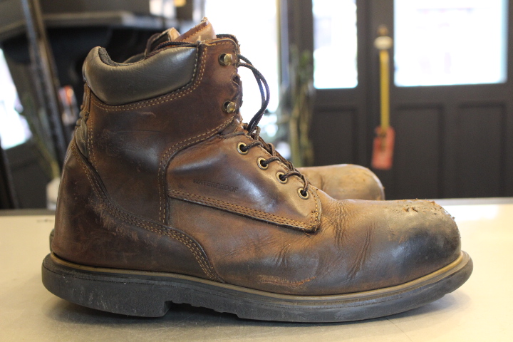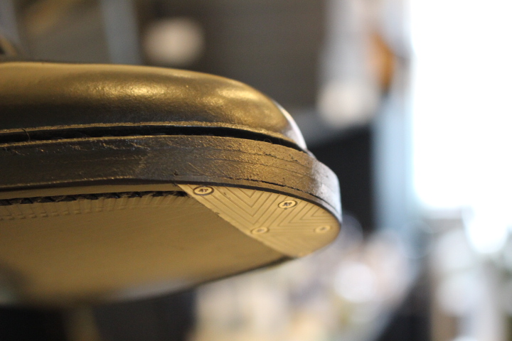 履き始めの補強で多い”ヴィンテージスティール”の取付。 減りやすい爪先を新品の状態で補強する修理です。 ソールに埋め込む事で取付けた感は無く、一体感あ...