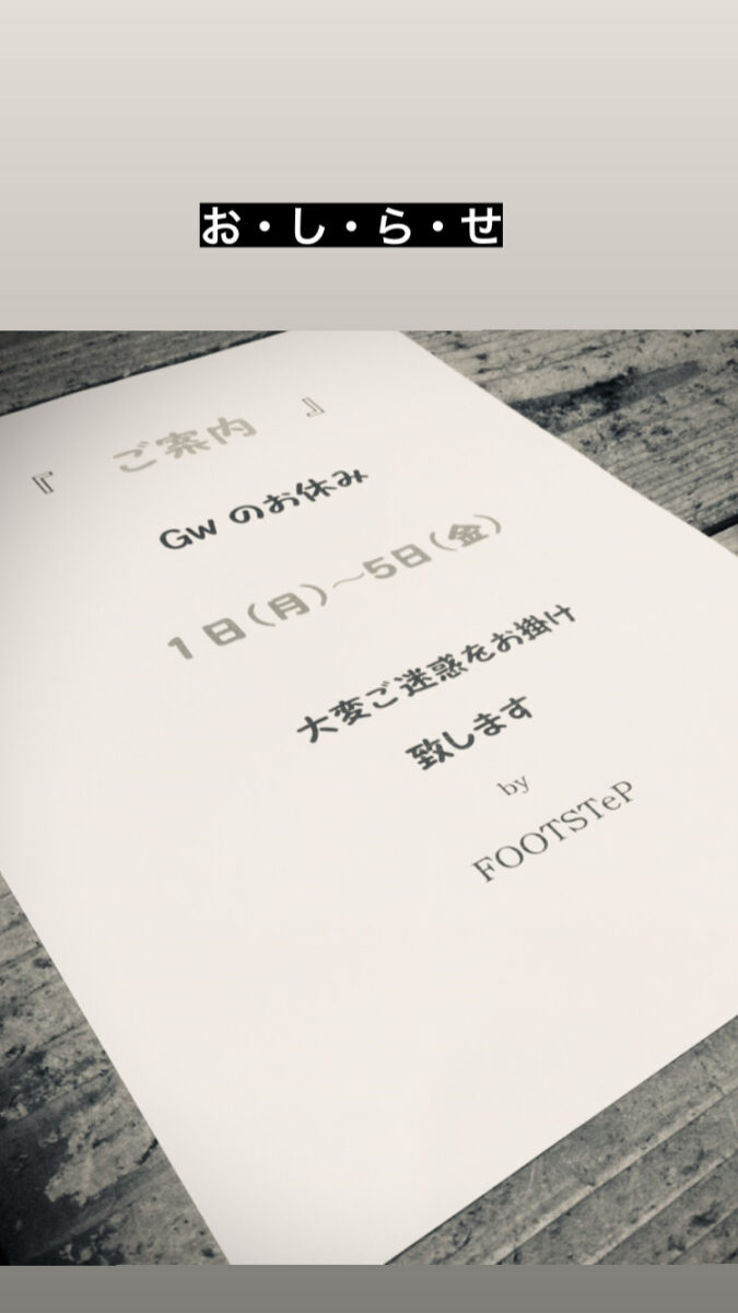 本日19日(水)・明日20日(木)は定休日とさせて頂きます。 大変ご迷惑をお掛け致しますが宜しくお願い致します。 ~FOOTSTeP2nd~ 北九州・小倉/靴・鞄の修理屋