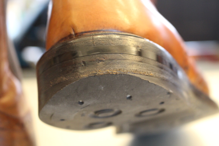 ソールにクッション性があり歩きやすいビジネスシューズを履いている方にオススメなソールの張替。 一体物のソールは1度カカトのすり減った部分を部分的に修理致しました。 ...