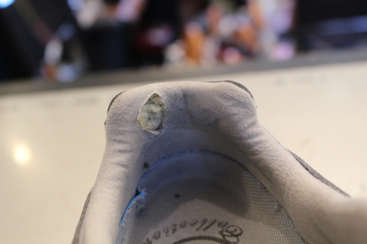ニューバランスの修理の相談で多い、色抜けやクリーニングをよく受けますが、今回は月日と共に劣化するこの部分! グレー色の部分が崩れているのが分かりますでしょうか? 反...