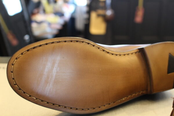 レザーソールの履き心地が好みなお客様のご要望に応え、純正と同じ仕様で修理しました。